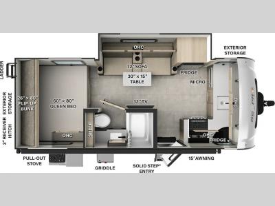 The complete composite wall construction and fully laminated roof provide a durable and sleek travel trailer you are sure to love. Each model features bigger nitrogen-filled tires and MORryde Solid, Supported Steps that will allow you to have much safer and secure footing for when going in out and of your travel trailer. A refrigerator also comes standard, along with back-up camera prep and more at-home comforts.